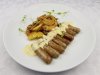 Нюрнберзькі ковбаски зі смаженою картоплею та лисичками
